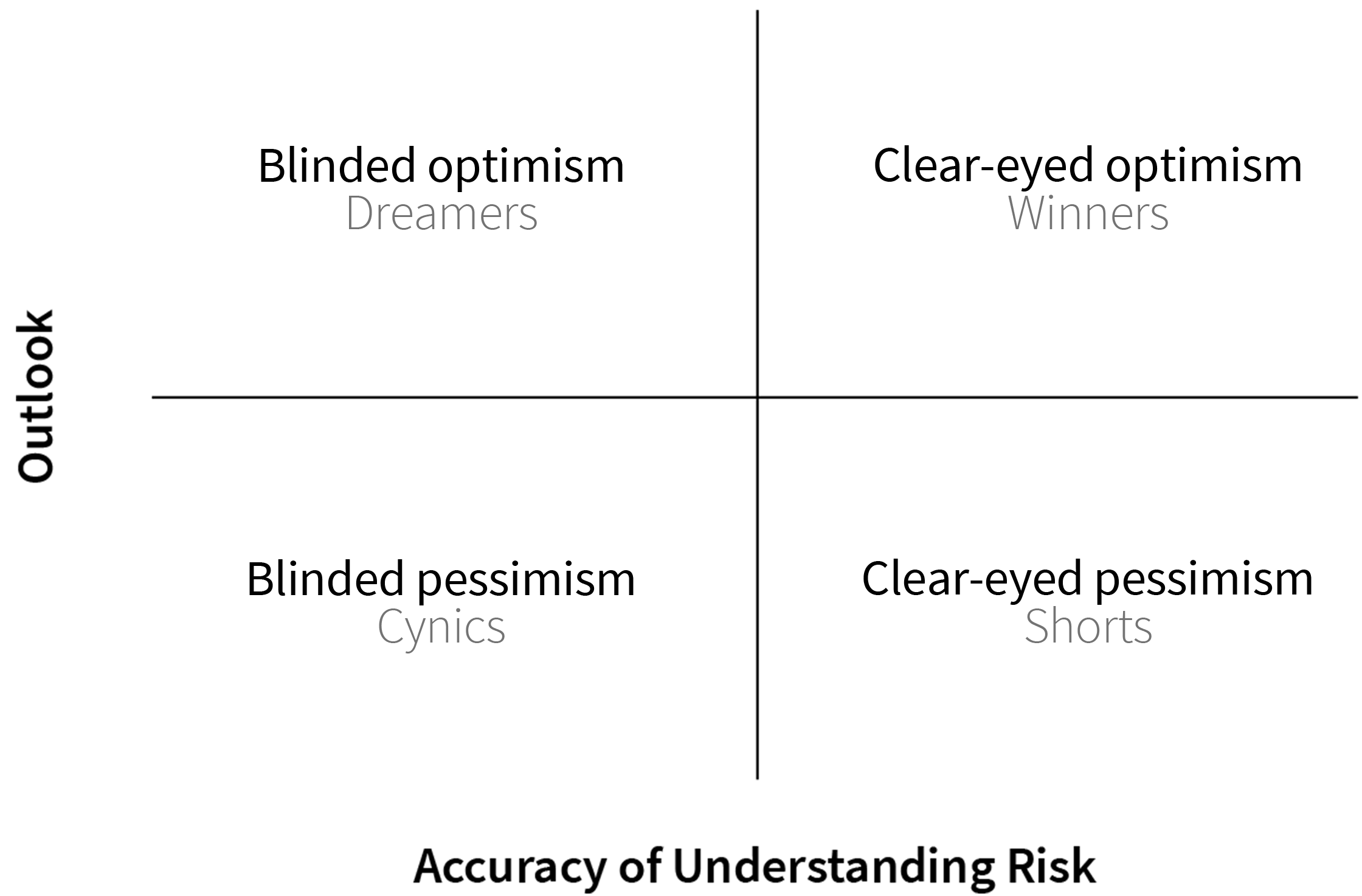 Founding and investing in startups is a “long-only” game, which is to say that it’s inherently optimistic. Optimism, like pessimism, can be accurate or delusional.